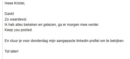 Als je binnen de 3 maanden besluit dat je meer begeleiding wil, door ook feedback te ontvangen op de posts uit de strategie, ben je meer dan welkom binnen Copy ’n Cash of Cracking the Content Code.